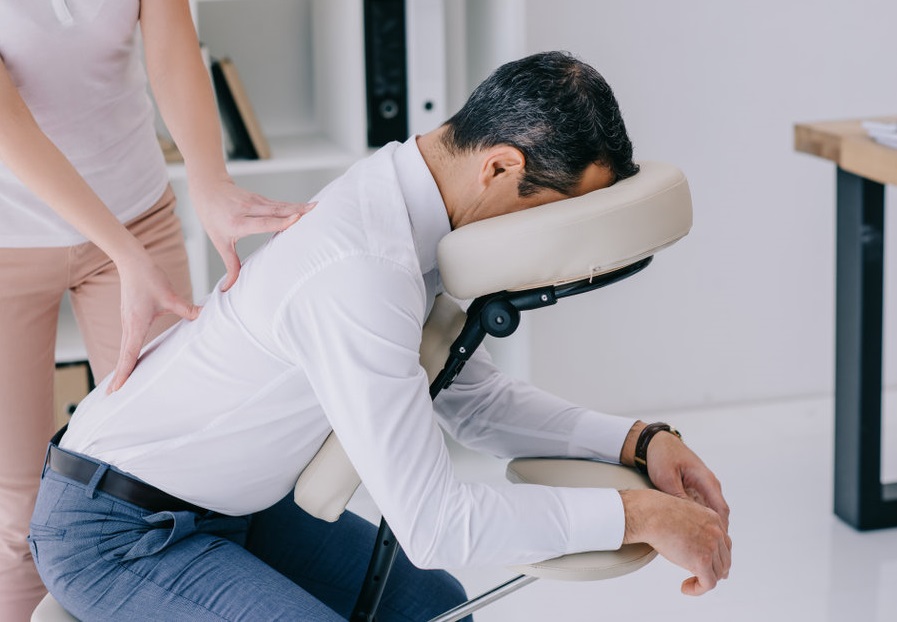 Studies show that massage can increase attention, making employees more productive. Corporate massage can also improve the health of employees, reducing the number of sick days taken. It can enhance workplace morale and team dynamics, fostering a positive company atmosphere. It demonstrates a commitment to employee wellbeing. Seated corporate massage is given over the top of clothes with the recipient sitting face forward in a specially adapted chair. The treatment lasts between 15 and 20 minutes, and focuses on areas of the body that tend to be under strain from working in an office environment, such as back, neck and shoulders.